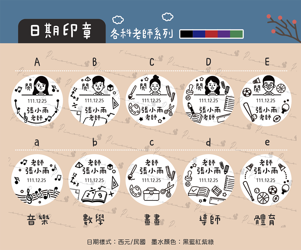 例如:A款/謝小勛老師/西元藍色墨水